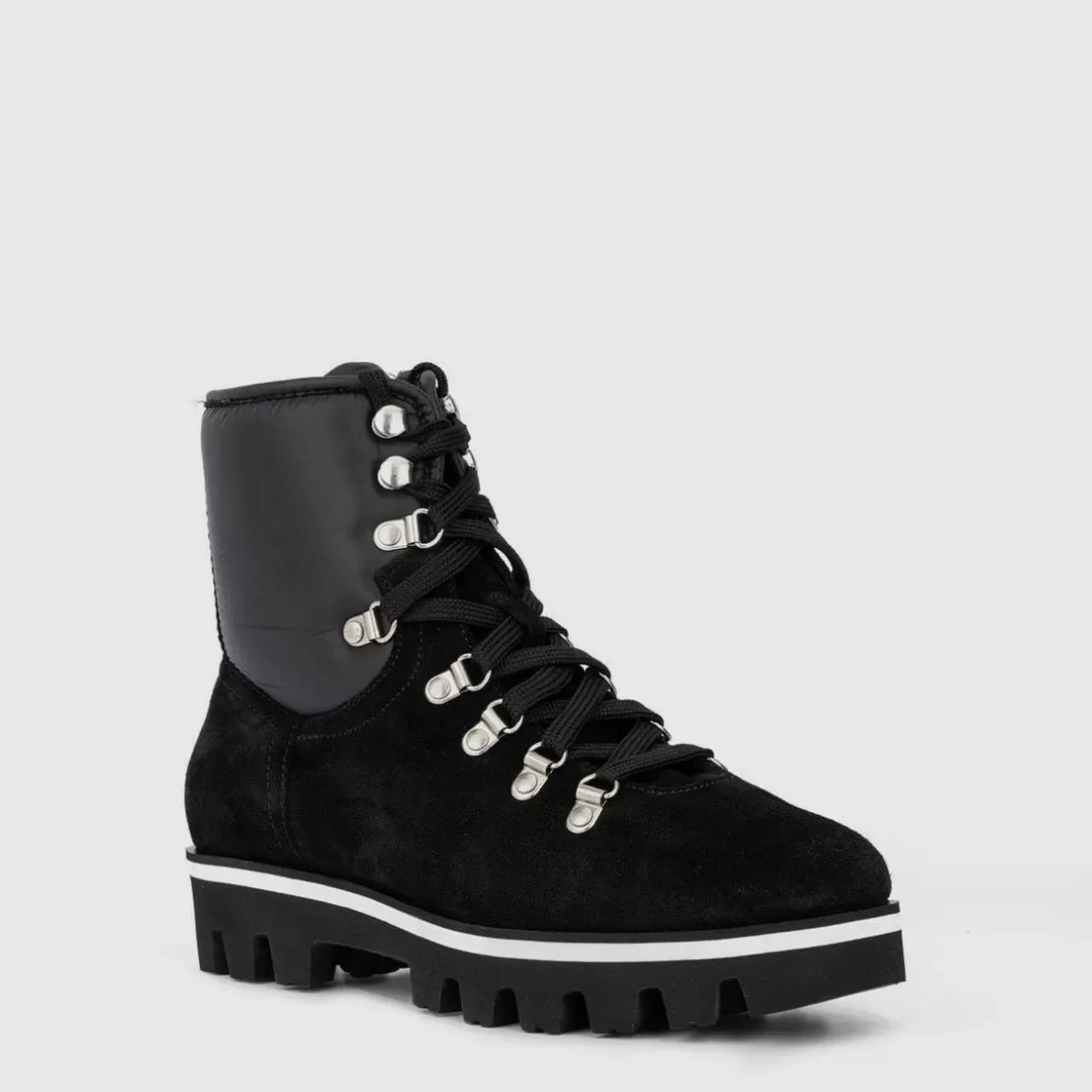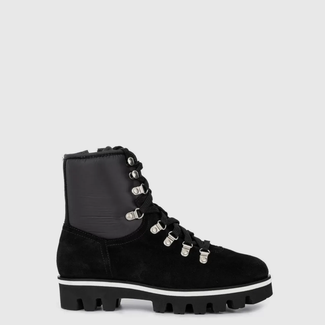 Construction Boot Styling And Substantial Lug Soles Make A Rugged Statement On The Morena Round-Toe Ankle Boot, Crafted In Weatherproof Waxy Suede; Nylon Insets And Lace-Up Closures Complete The Look. Made In Italy.