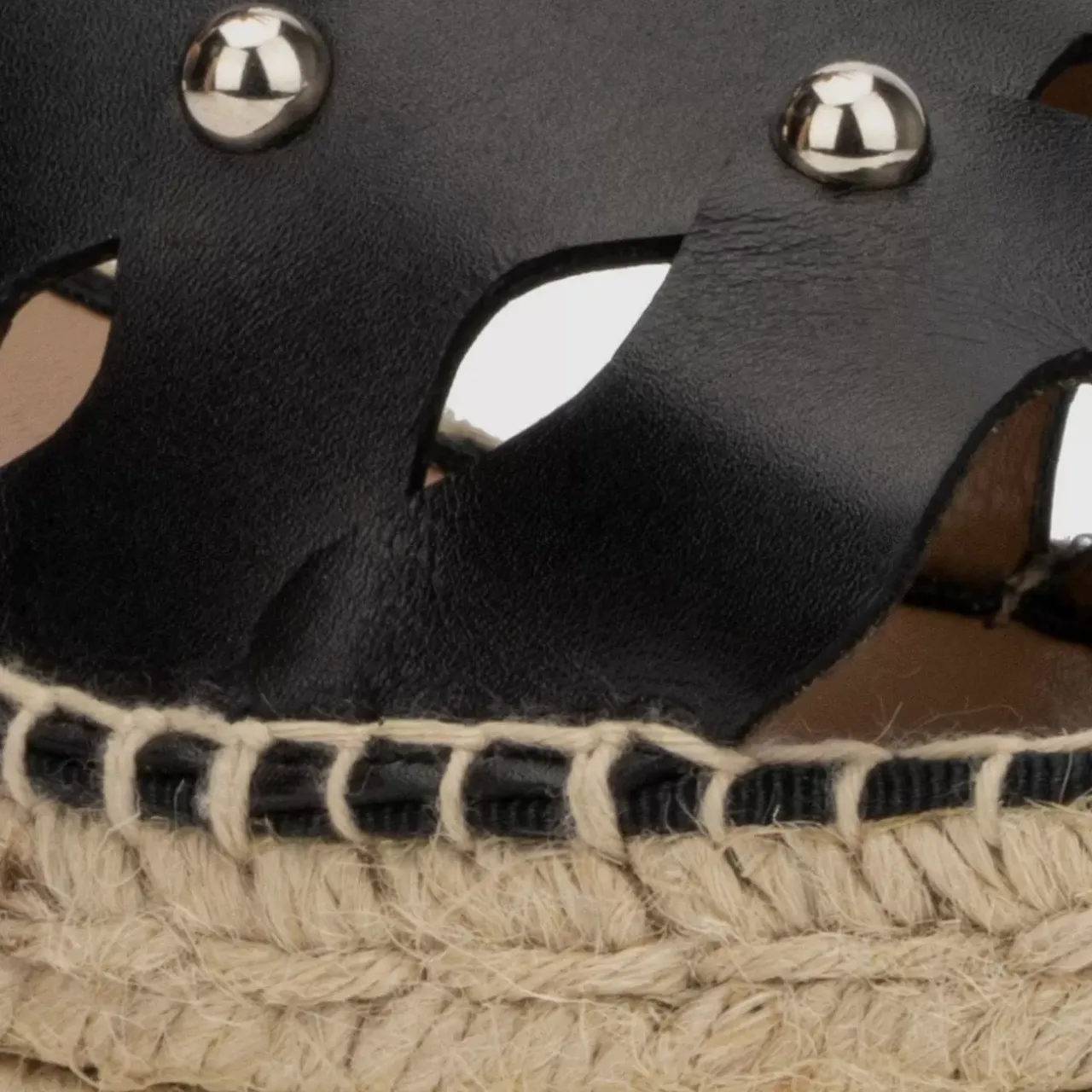 Perfectly Polished: Silvertone Buckles And Studded Embellishments Elevate The Brianne Espadrille Platform Sandal, Designed In Smooth Calf Leather. Wavy Straps On The Upper Impart An Artistic Style Statement. Pair It With Sleek Slim Pants Or A Voluminous Skirt.