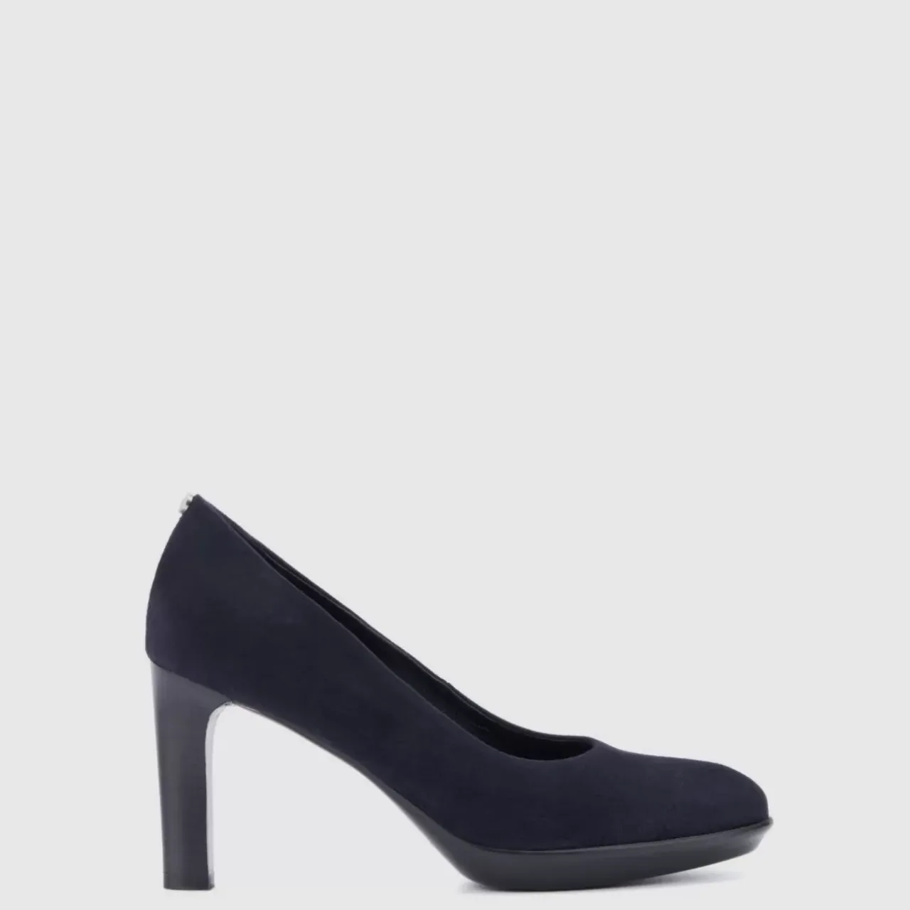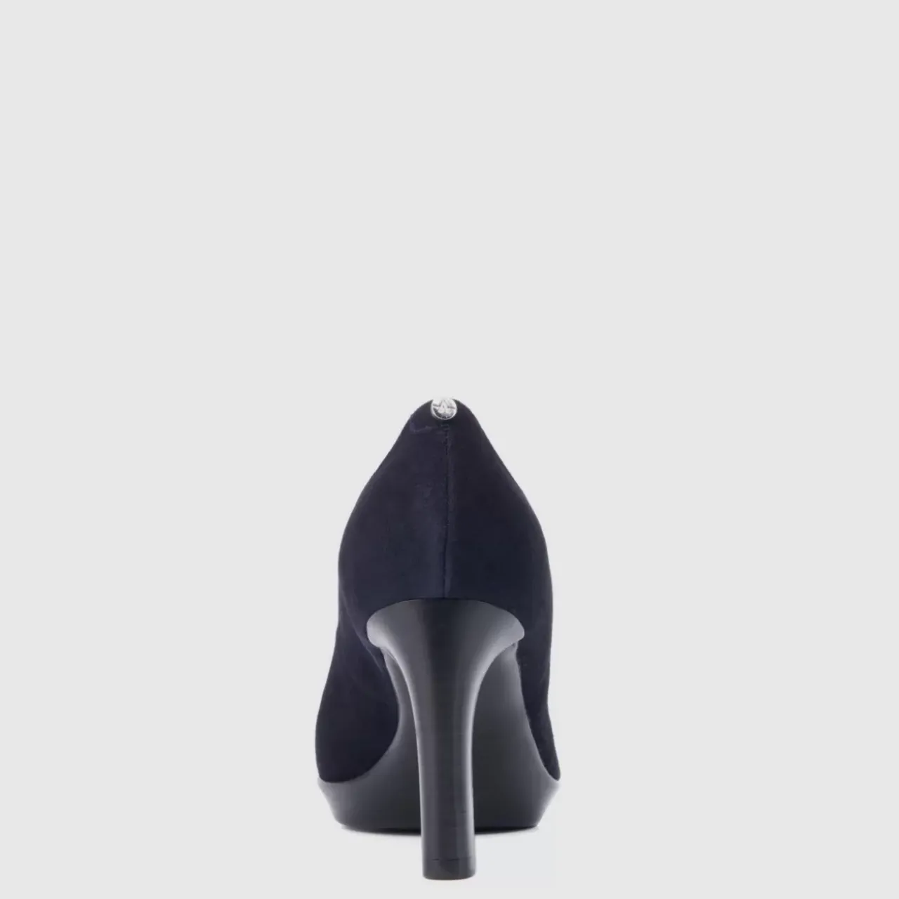 A Flexible Platform Sole Imparts Comfort To The Raysa Pump, Designed With An Almond-Toe Silhouette And Stacked Heel. Available In Nappa Leather/Black Or Dress Suede/Navy, It Pairs Perfectly With An Array Of Weekday Ensembles. A Polished, Logo-Embossed Stud Detail On Back Adds An Understated Finishing Touch.