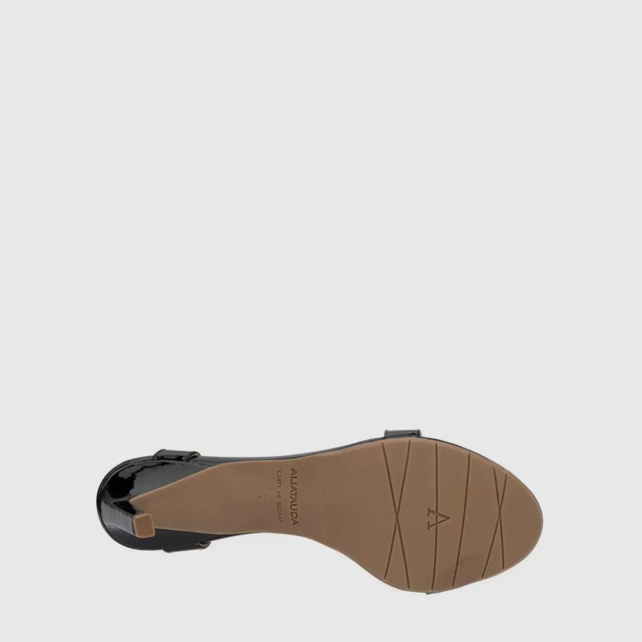 Crafted In Specchio Or Patent Leather, The Rosetta Sandal Shines Brightly However You Wear It. With A Covered Buckle And Heel, It Translates From Desk To Dinner In Style Whenever Temperatures Rise.