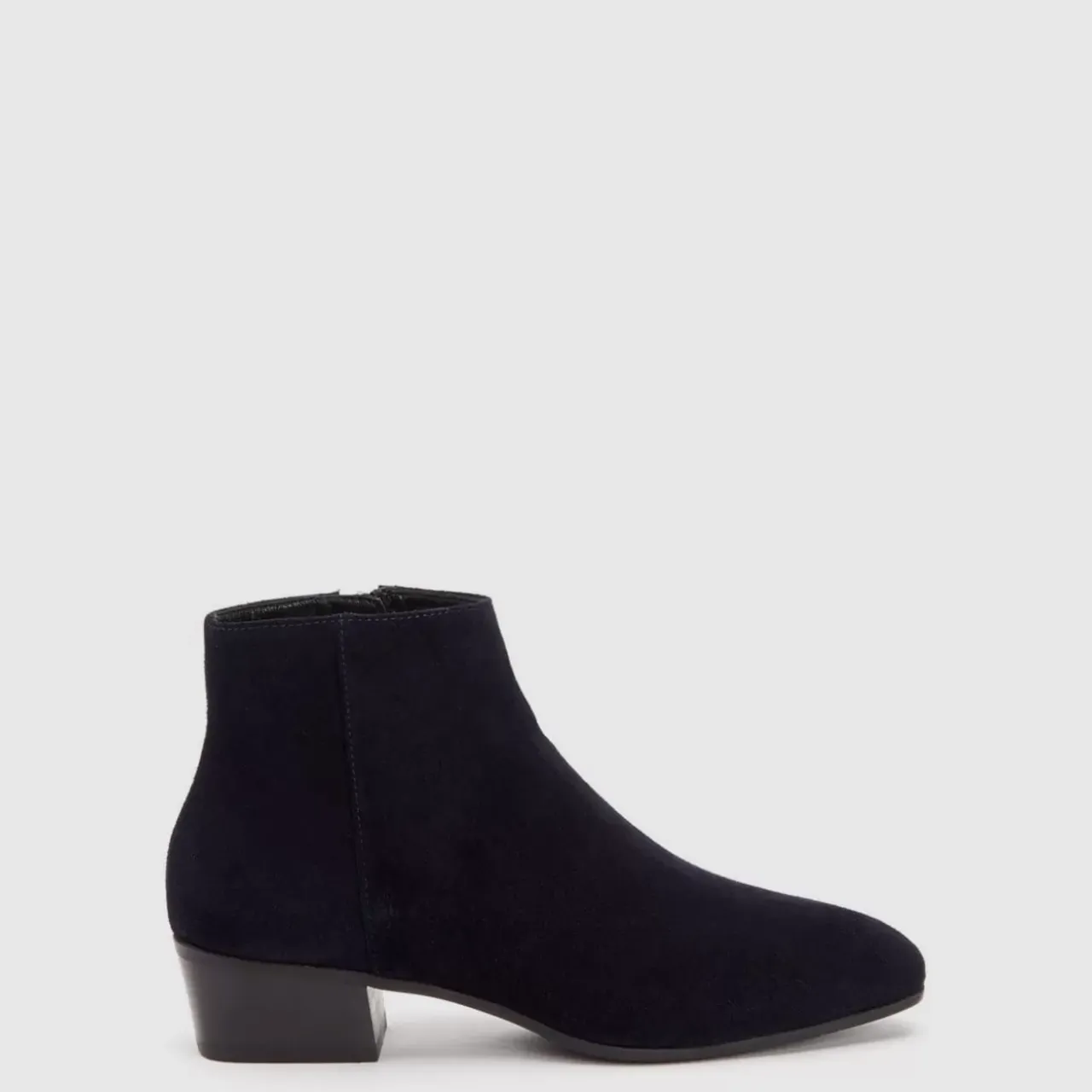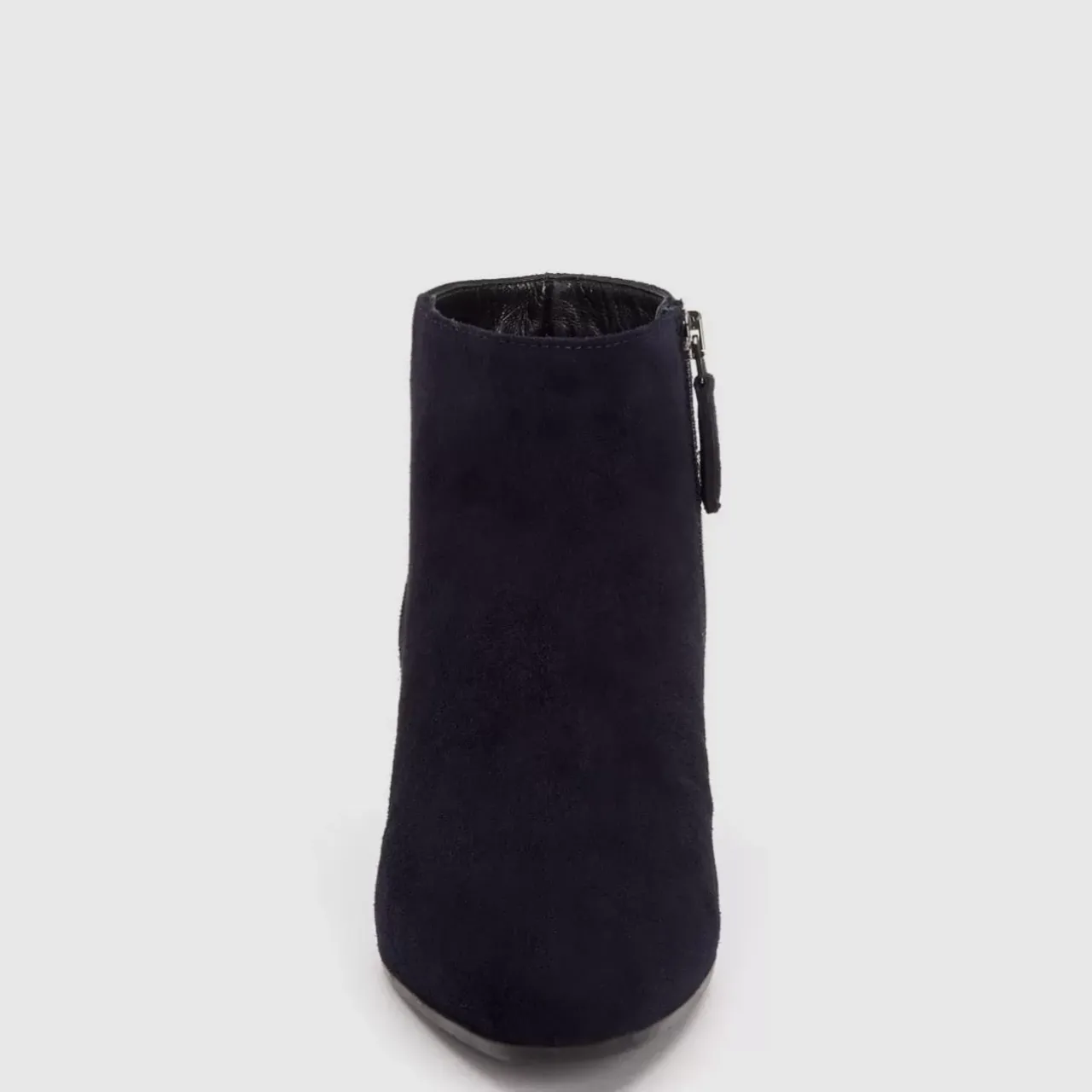 Classic Suede Bootie With A Snipped Toe And Inside Zipper On A Stacked Heel.