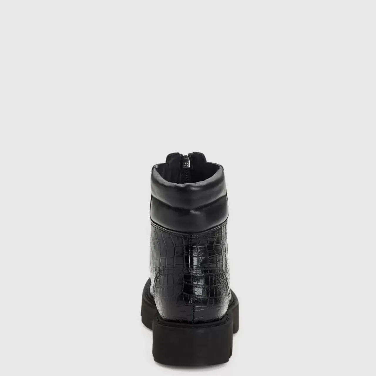 Mixing It Up. Distinctly Modern, This Streamlined Hiker Makes An Impact With Its Front Zip And Padded Calf Leather Collar. Crafted In The Croc Embossed Leather With A Weatherproof Finish To Guarantee You Always Look Good, Whatever The Weather. Anchored On A Lightweight Lug Sole, This Boot Features A Functional Front Zipper And Contrast Stitch Welt Detail.