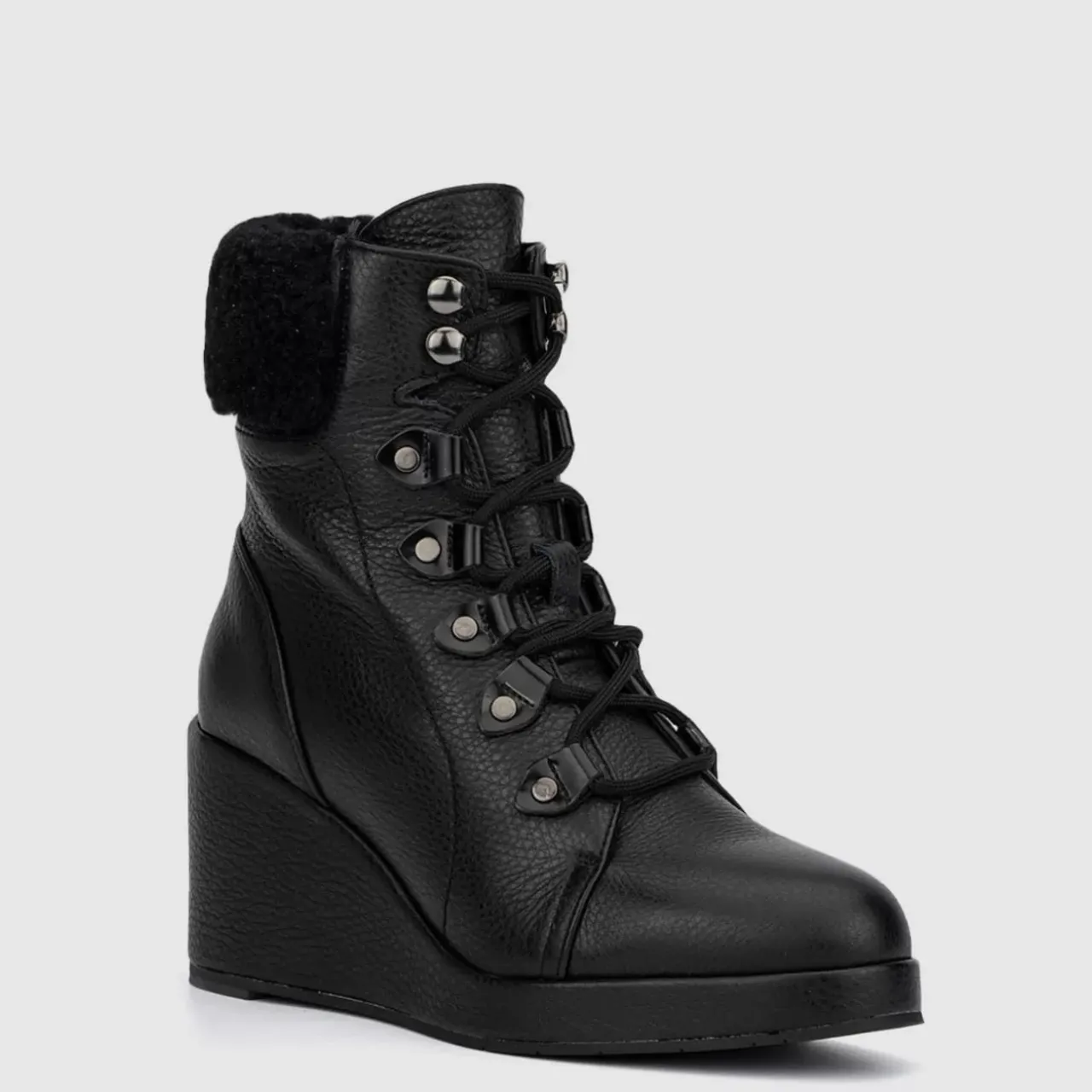 Stay Warm In Style All Season Long, Thanks To The Shearling-Lined Inna Boot. Designed In Either Calf Leather Or Soft Suede, It Features A Covered Wedge Heel For Optimum Comfort.