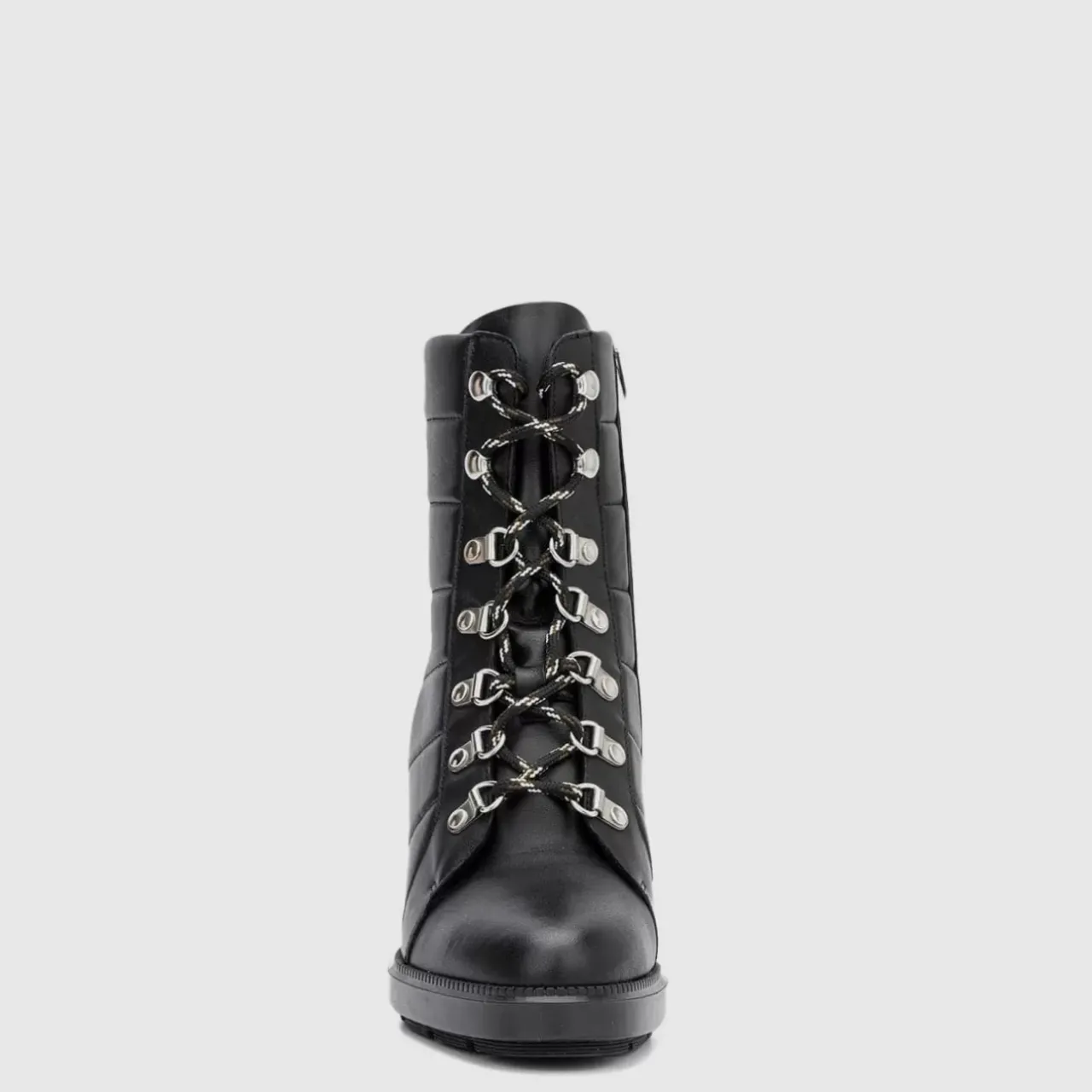 Quilting Elevates The Ruggedly Chic Ivanya Boot, Designed In Calf Leather Or Soft Suede. With A Stacked High Heel, Round-Toe Shape And Lace-Up Closure, It Pairs Perfectly With A Sleek Skirt And Opaque Hosiery.