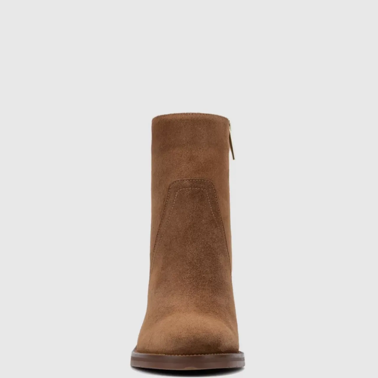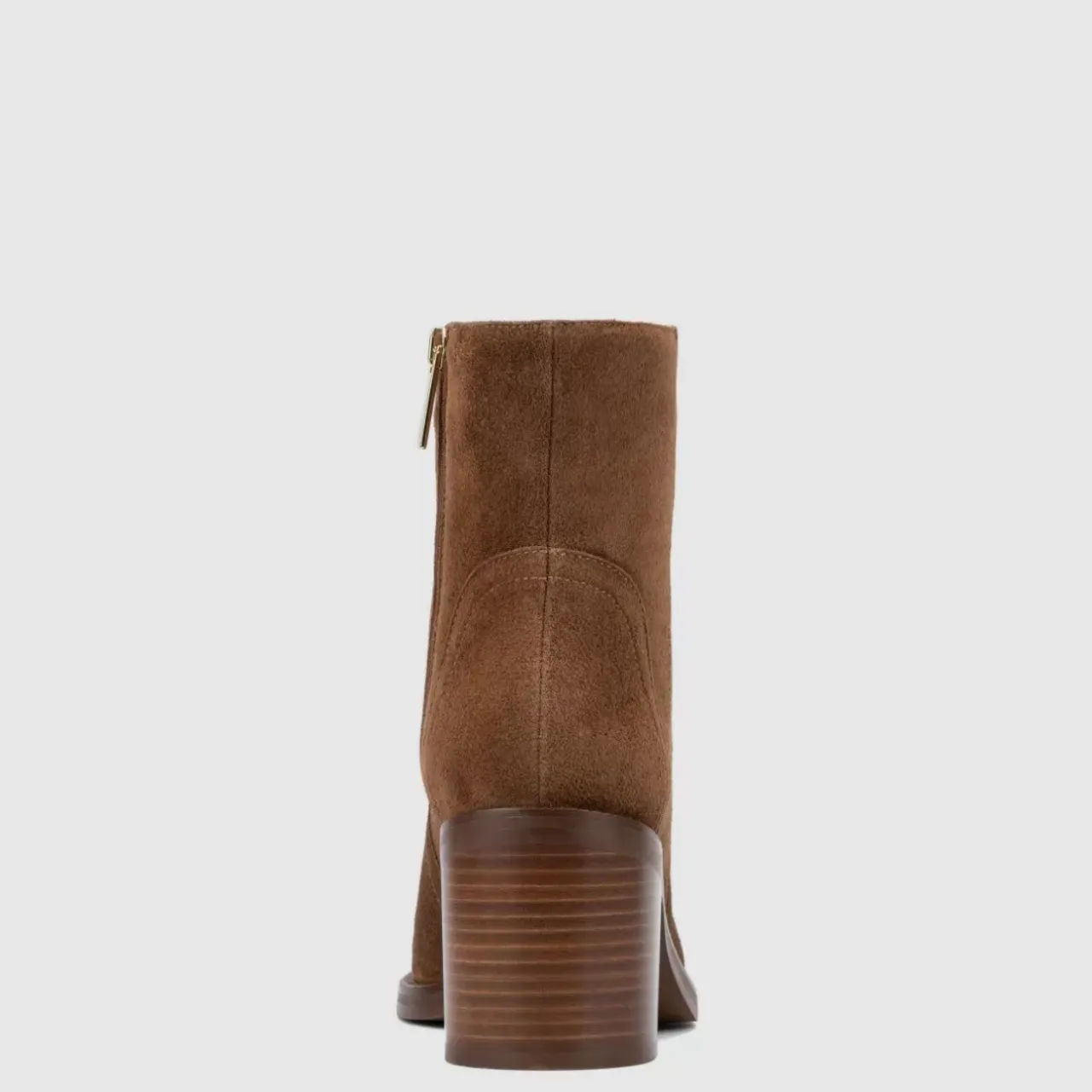 Stitched Embellishment Imparts Subtle Detailing To The Janella Boot, Featuring A Round-Toe Silhouette And Stacked Heel. Crafted In Leather Or Suede, An Inside Zipper Closure And Breathable Lining Complete The Look. From Weekdays To Weekends, A Chic Choice Of Neutral Hues Makes This Look Endlessly Versatile.
