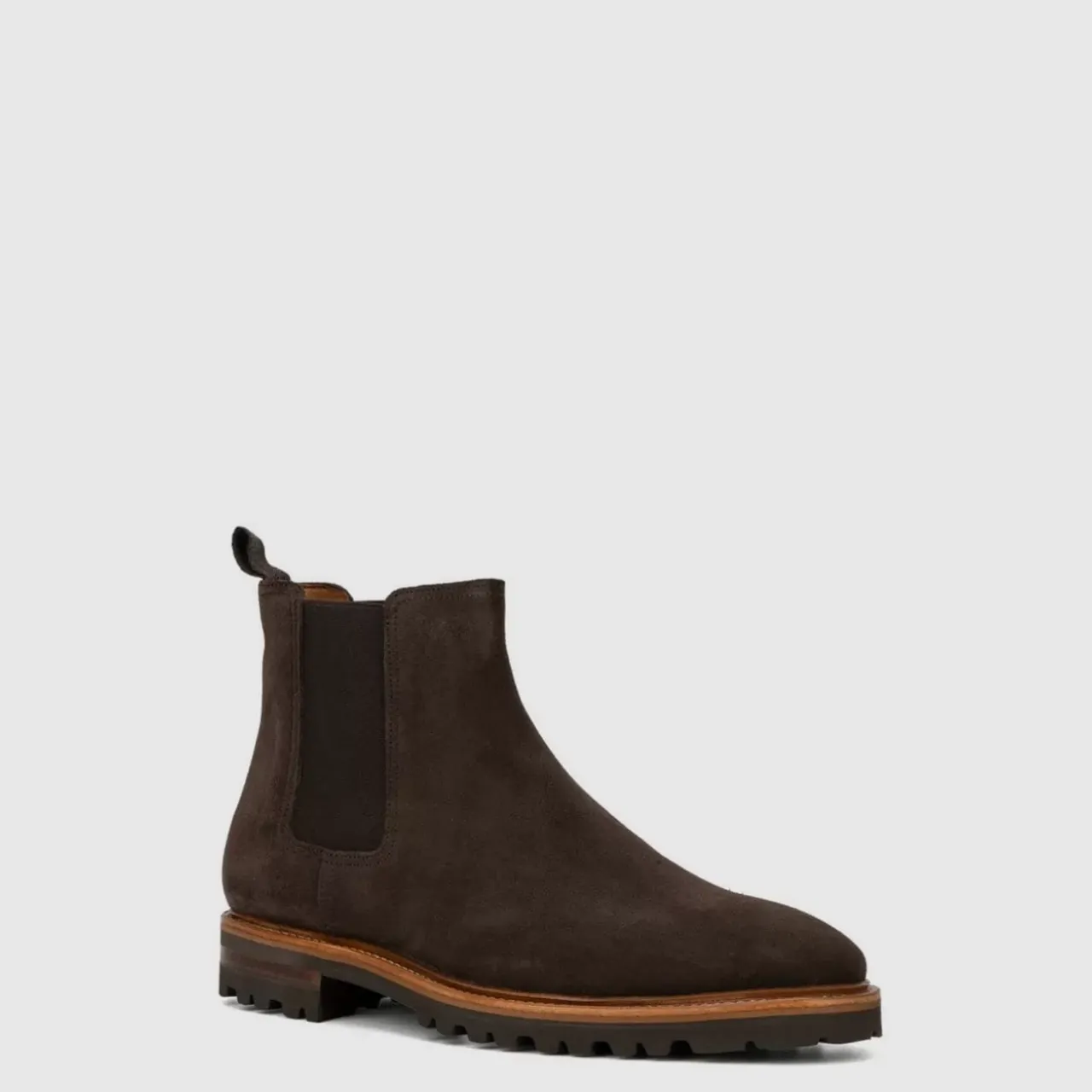 Classic Chelsea Boot In Suede With Gore Detail And A Lug Sole.