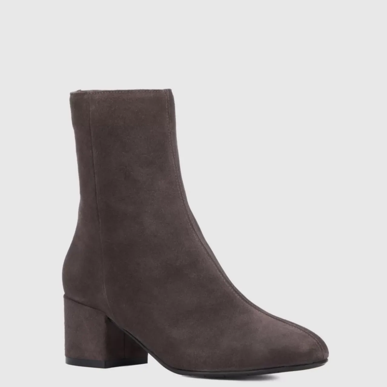 Rendered In Suede, Hair Calf, Crinkle Patent Or Snake-Print Leather, The Leonora Boot Comes In A Sophisticated Array Of Colors. Stitched Detailing And A Covered Heel Elevate The Look, Featuring A Comfortable Round-Toe Shape And Stretch Gore Panel For Ease Of Wear. Breathable Lining And Inside Zipper Closures Complete The Look.