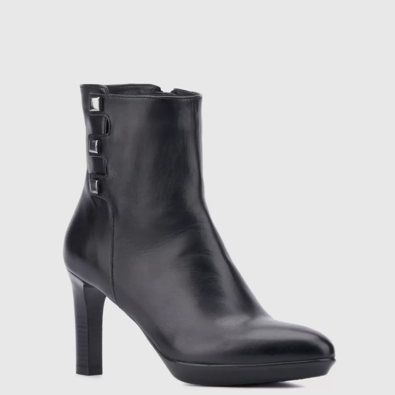 Square Studded Details Add Polish To Our Romea Ankle Boot, Crafted In Nappa Leather Or Soft Suede. A Stacked Heel And Almond Toe Shape Complement The Sleek, Sophisticated Design. Flexible Platform Soles And Our Signature Lining Make It Both Comfortable And Breathable, Respectively.