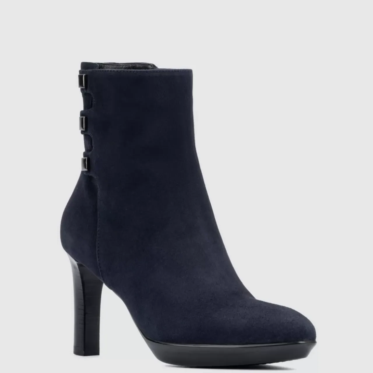 Square Studded Details Add Polish To Our Romea Ankle Boot, Crafted In Nappa Leather Or Soft Suede. A Stacked Heel And Almond Toe Shape Complement The Sleek, Sophisticated Design. Flexible Platform Soles And Our Signature Lining Make It Both Comfortable And Breathable, Respectively.