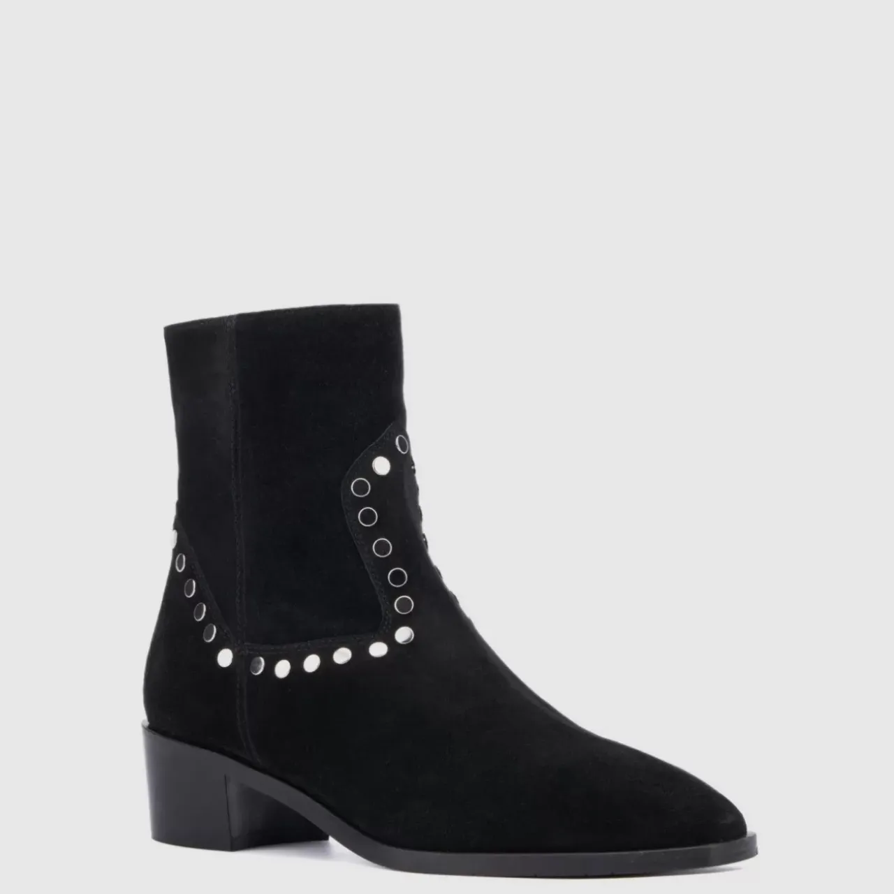 Western Stitching And Polished Studs Set Apart The Ronalda, Our Silky Suede Ankle Boot. A Chic Complement To Tailored Pants Or A Sleek Skirt With Opaque Tights, It’s An Essential Look For Your Next Night Out. With A Square-Toe Silhouette And Stacked Heel, It’s Finished With Our Signature Lining For Breathability.