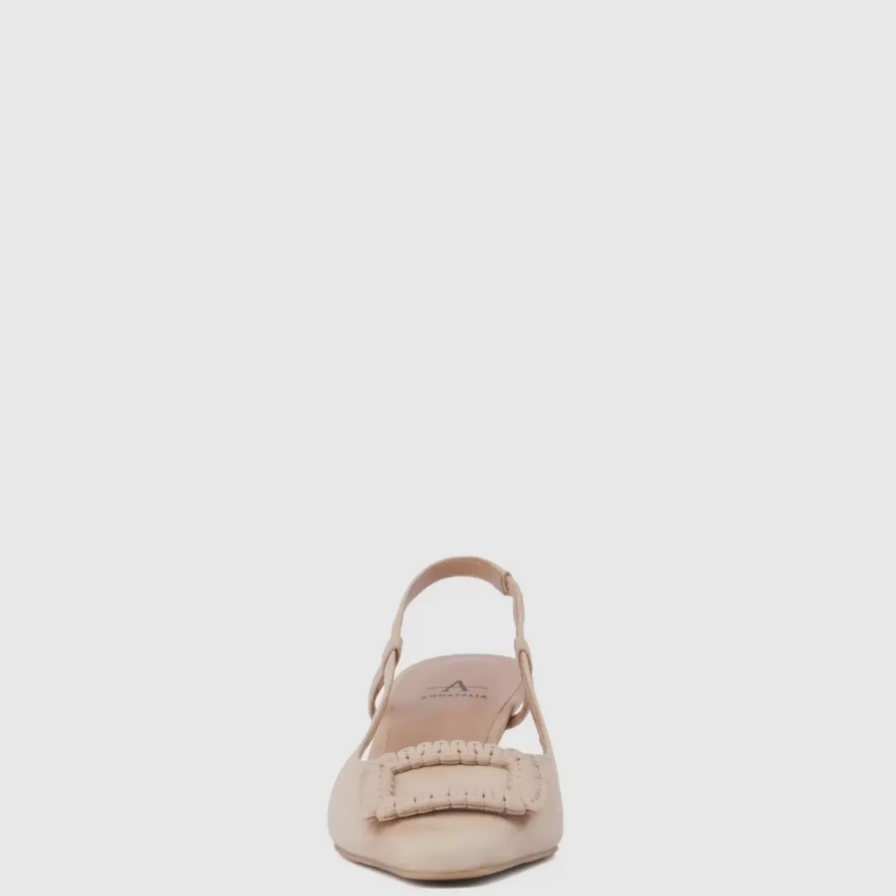 Pretty Meets Practical In Our Arabella Slingback, Crafted In Dress Suede As Well As Shimmery Metallic Leather. Designed With A Snipped-Toe Silhouette, Woven Square Accent On Front And Scratch-Resistant Lacquered Heel, It’s Finished With Elastic In Back For Ease Of Wear. A Chic Complement To Skirts And Dresses As Well As Trousers, It Translates From 9 To 5 And 5 To 9 In Style.