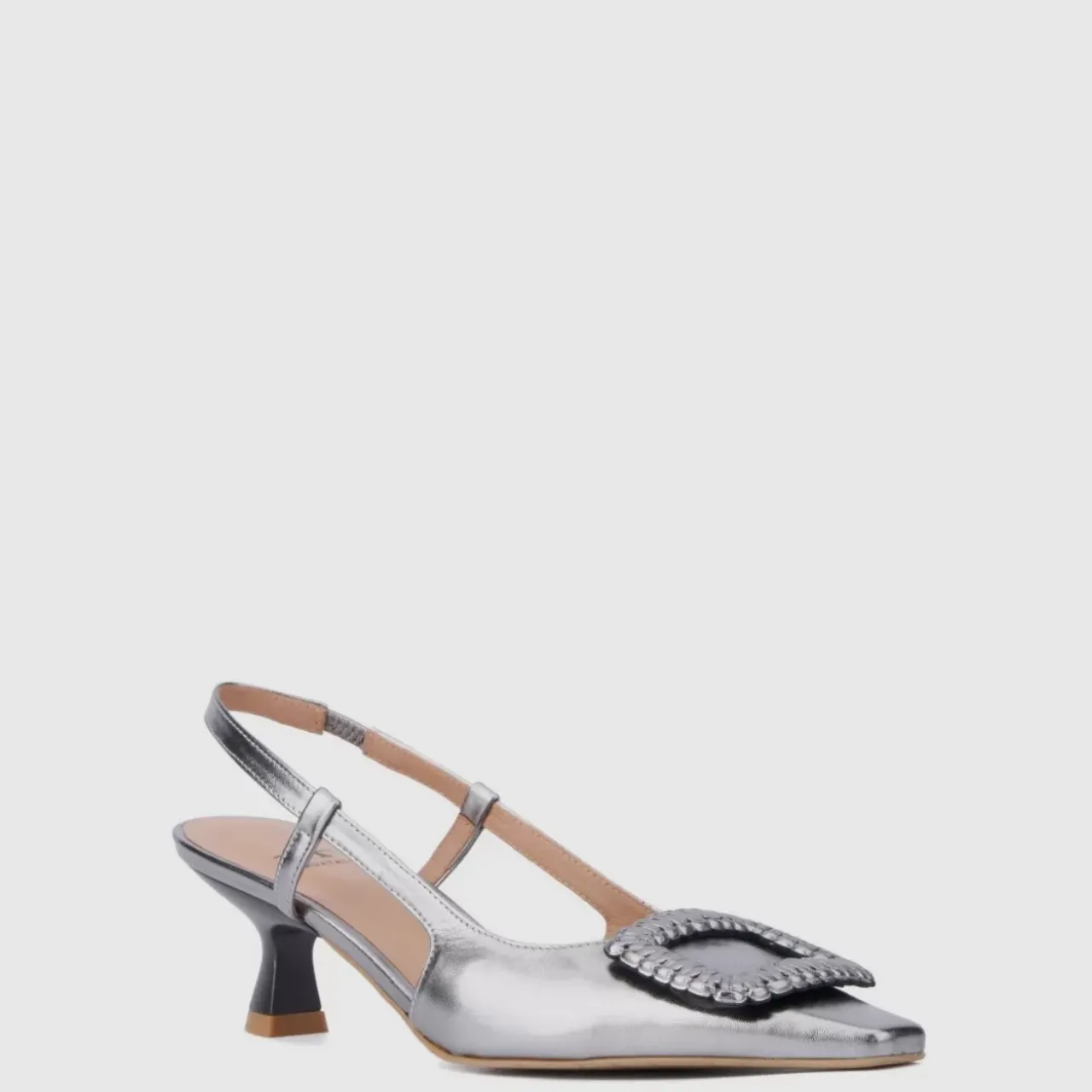 Pretty Meets Practical In Our Arabella Slingback, Crafted In Dress Suede As Well As Shimmery Metallic Leather. Designed With A Snipped-Toe Silhouette, Woven Square Accent On Front And Scratch-Resistant Lacquered Heel, It’s Finished With Elastic In Back For Ease Of Wear. A Chic Complement To Skirts And Dresses As Well As Trousers, It Translates From 9 To 5 And 5 To 9 In Style.