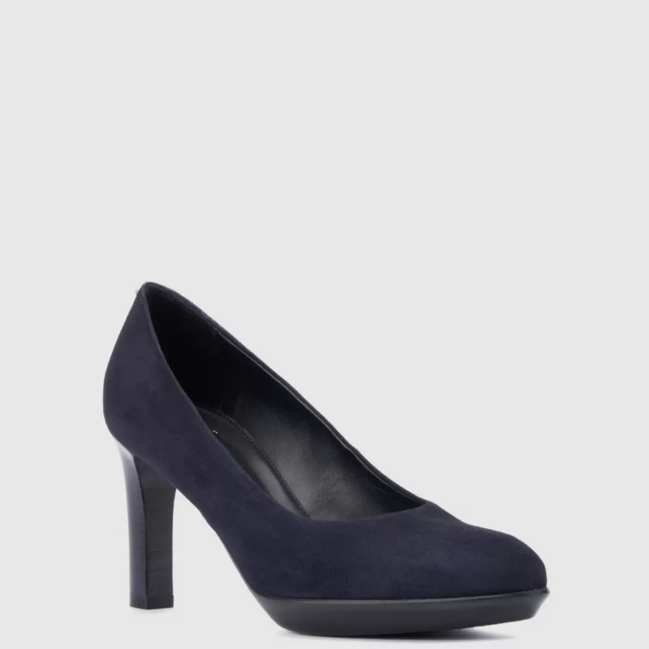 A Flexible Platform Sole Imparts Comfort To The Raysa Pump, Designed With An Almond-Toe Silhouette And Stacked Heel. Available In Nappa Leather/Black Or Dress Suede/Navy, It Pairs Perfectly With An Array Of Weekday Ensembles. A Polished, Logo-Embossed Stud Detail On Back Adds An Understated Finishing Touch.