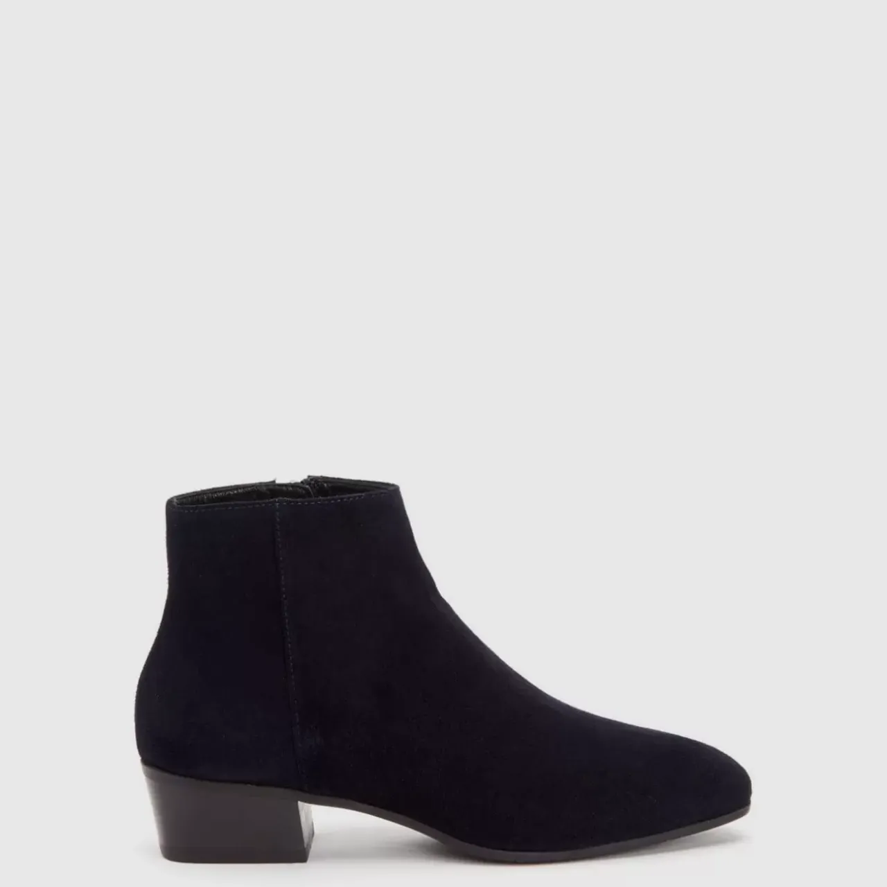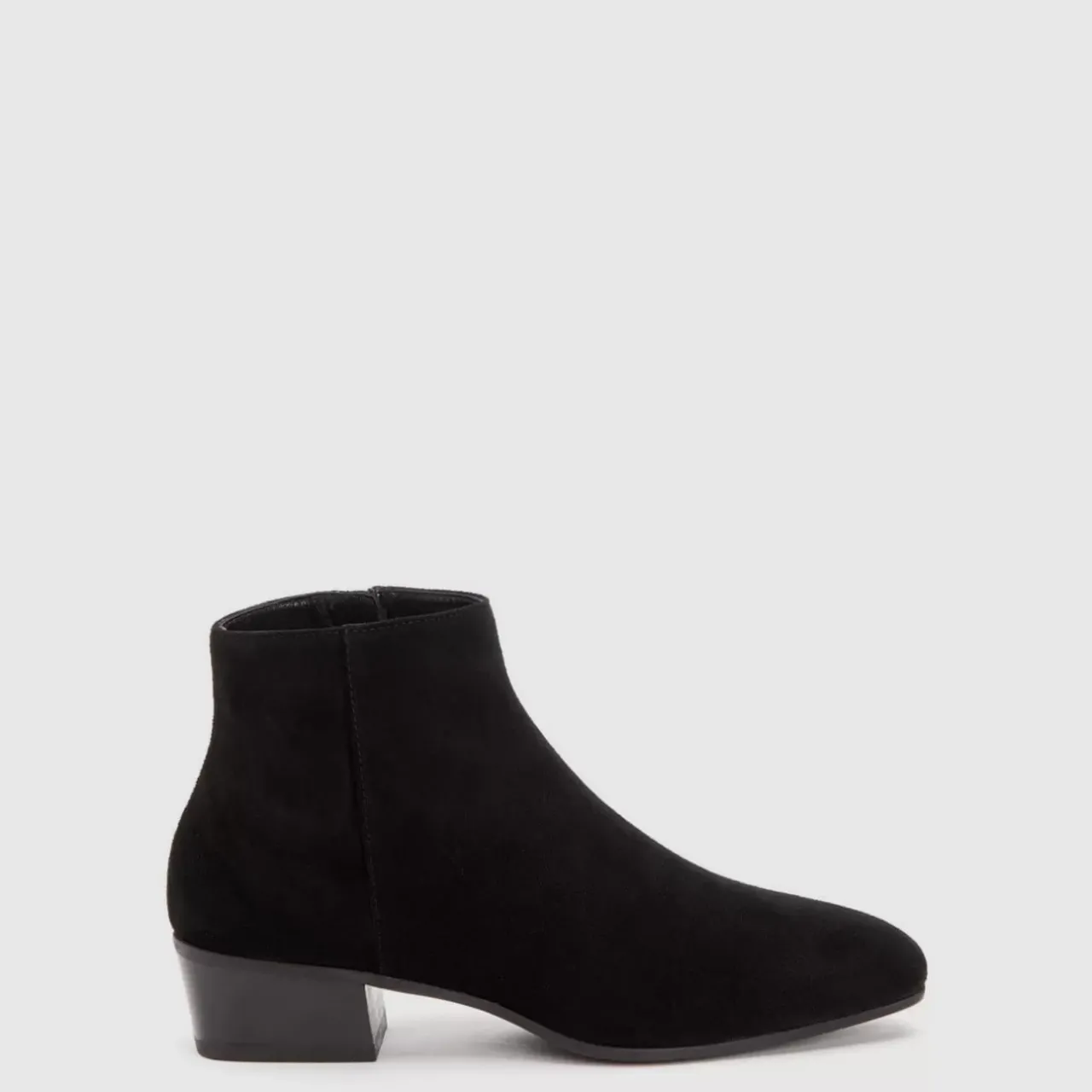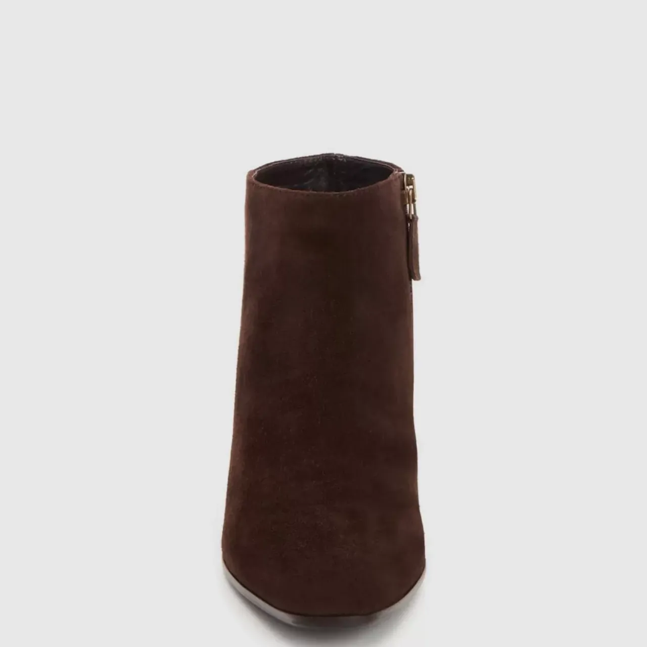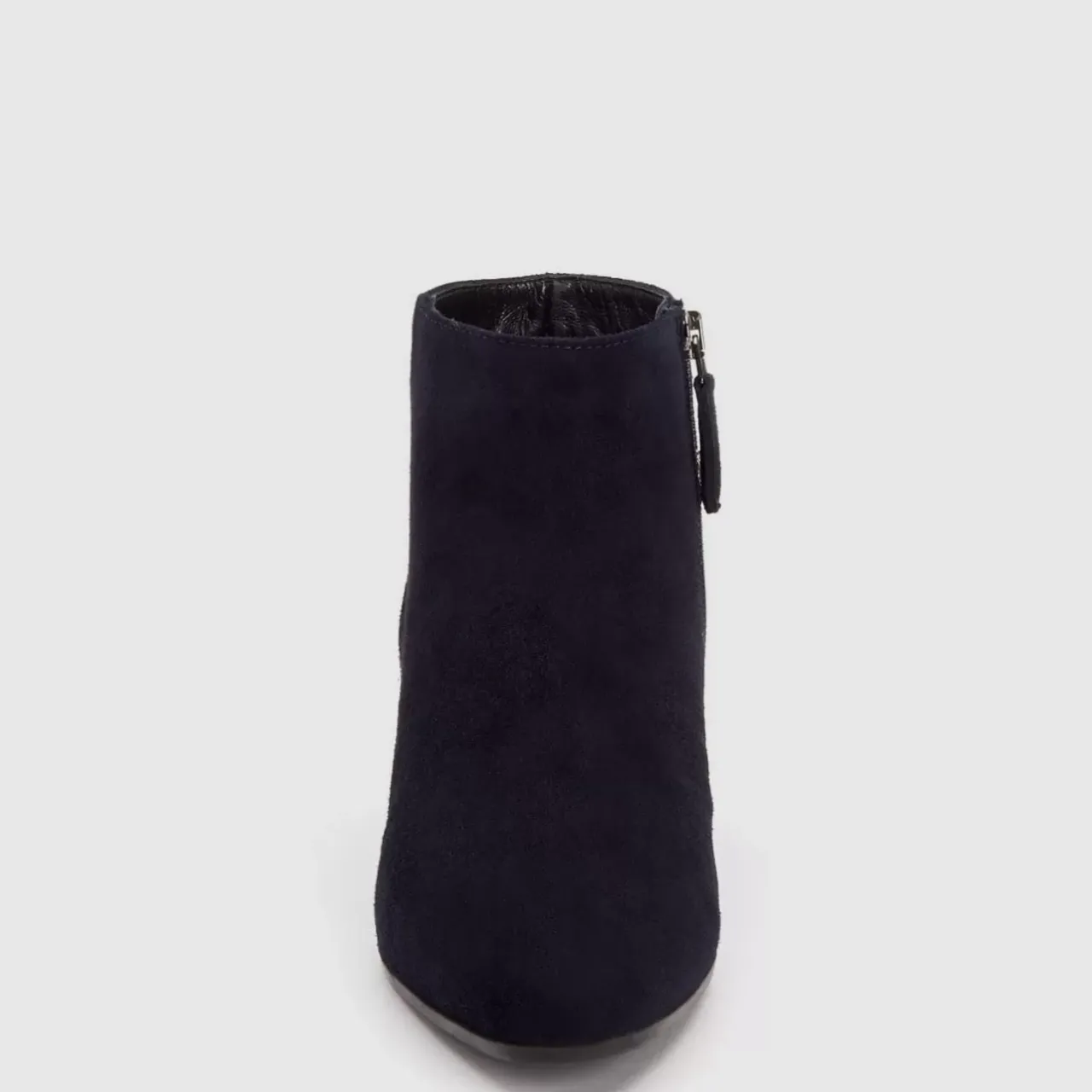 Pointy Toe Suede Bootie With An Inside Zip On A Stacked Heel. Now Available In Wide Widths.