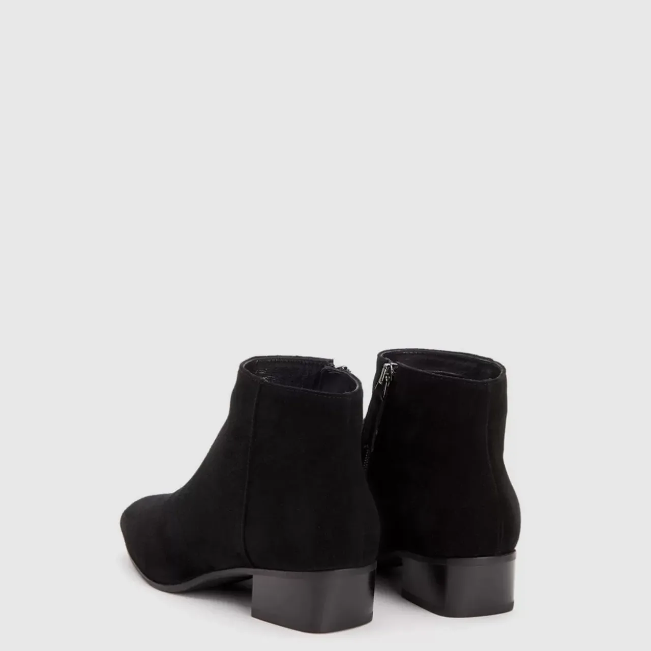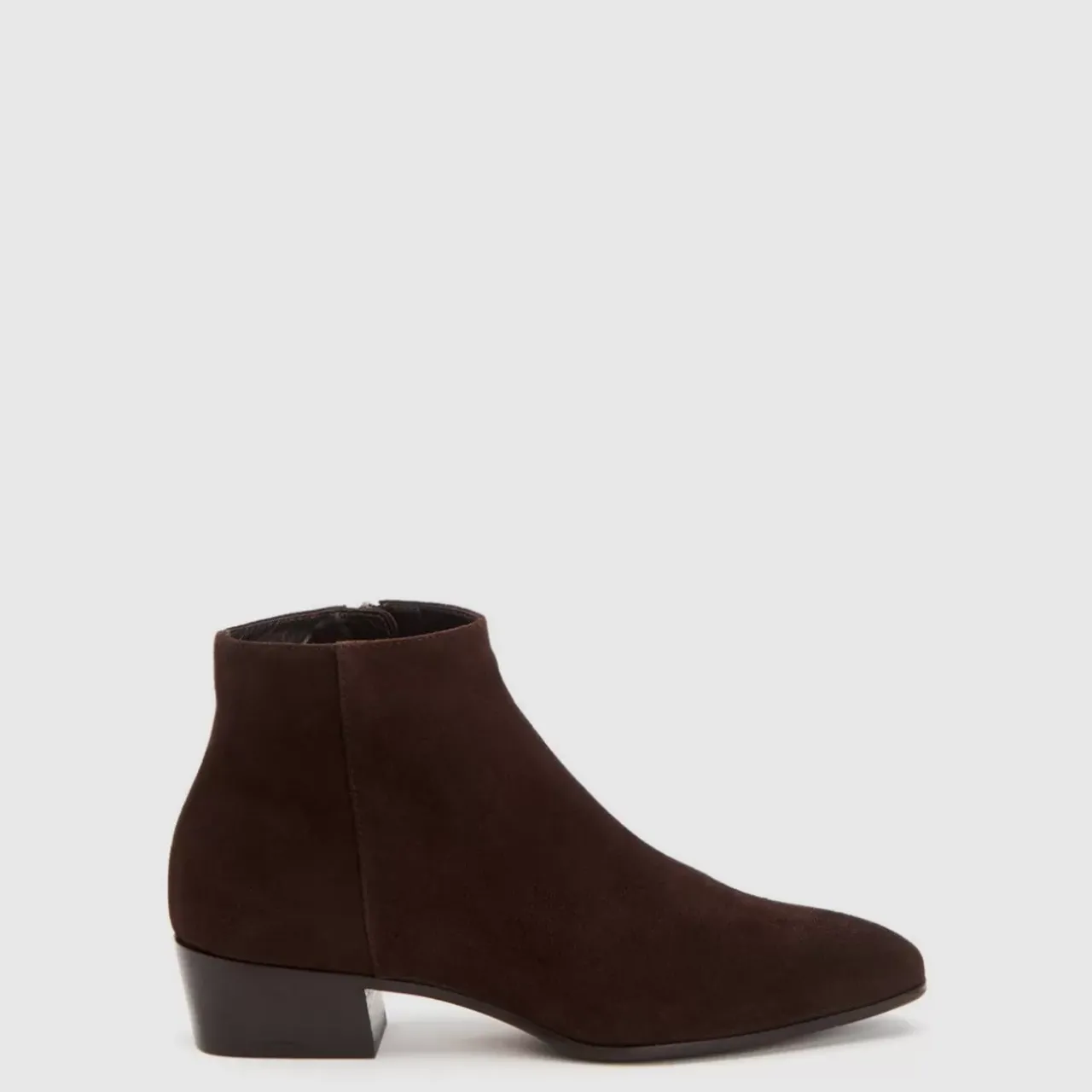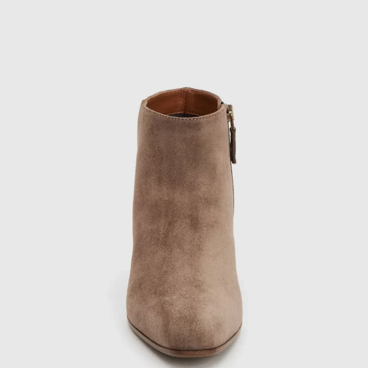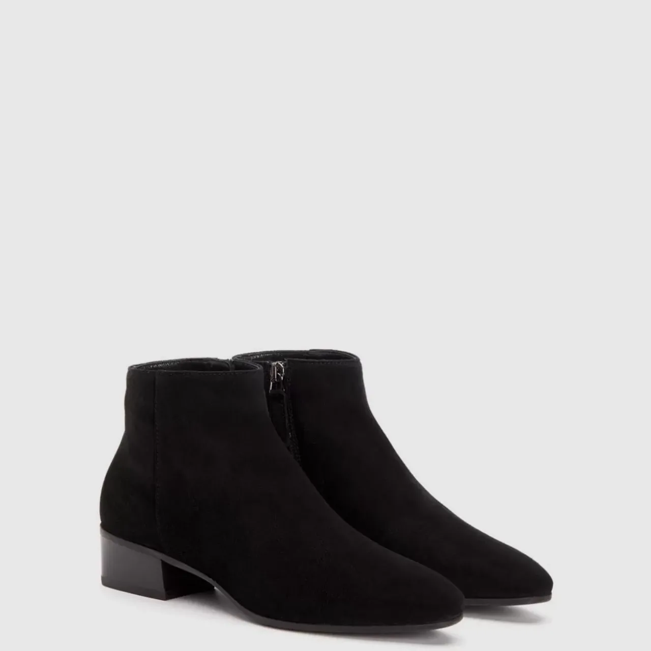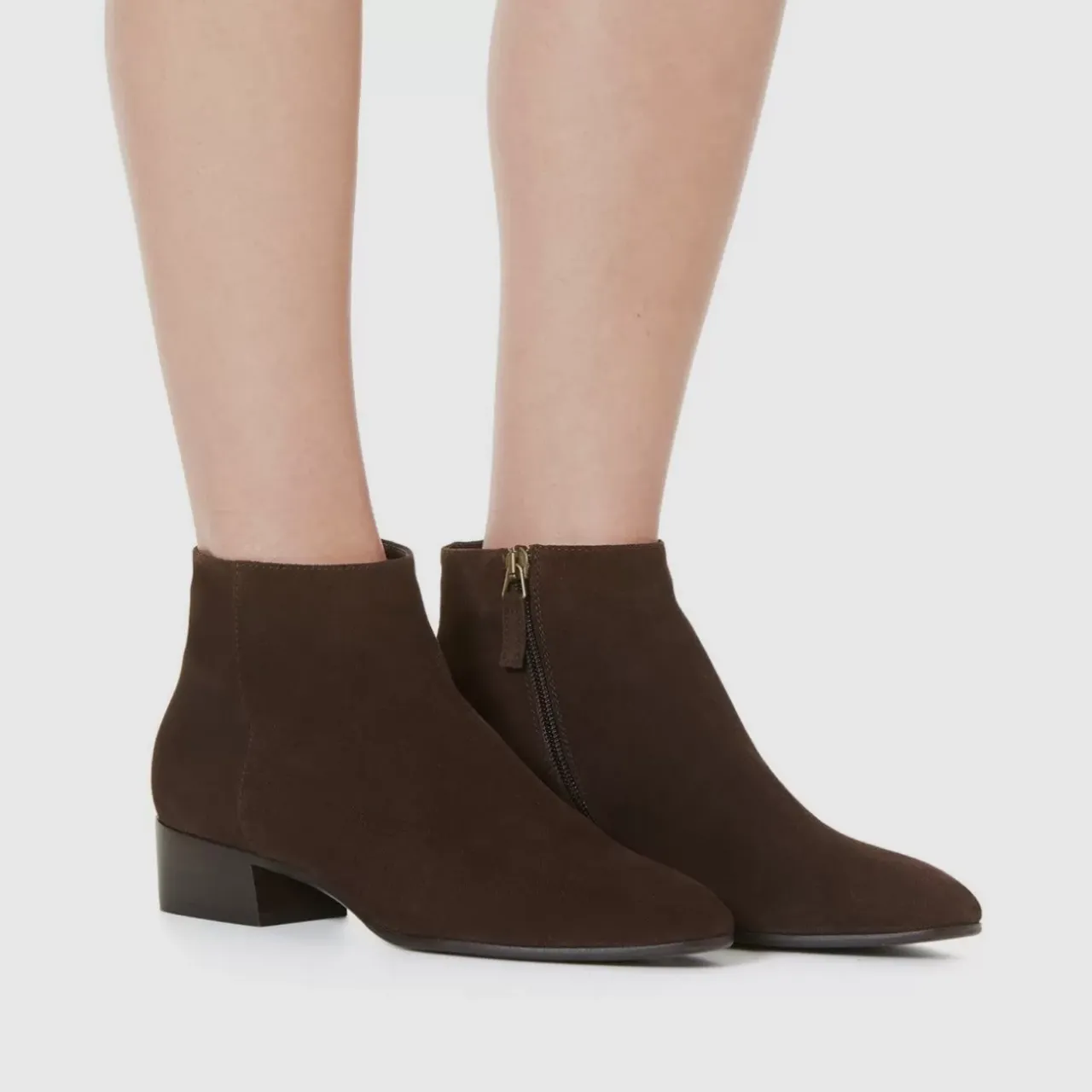 Pointy Toe Suede Bootie With An Inside Zip On A Stacked Heel. Now Available In Wide Widths.