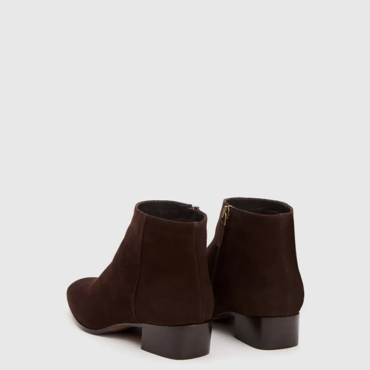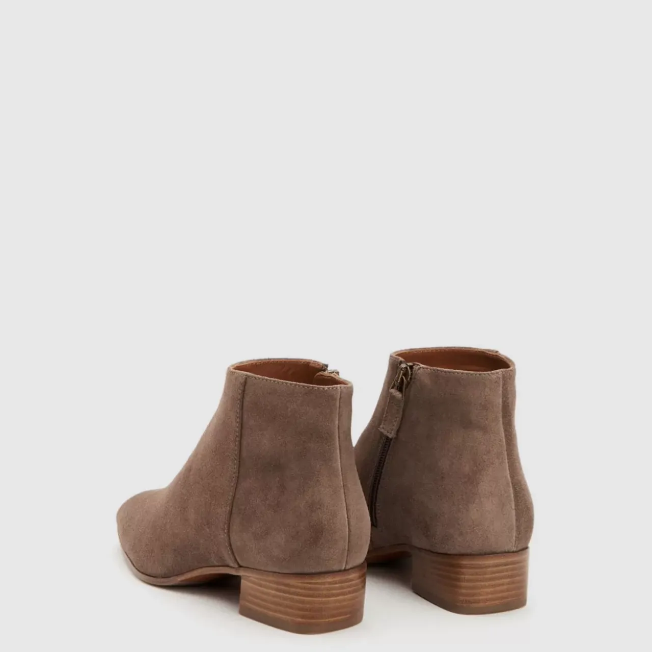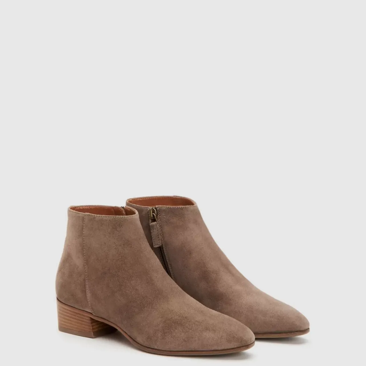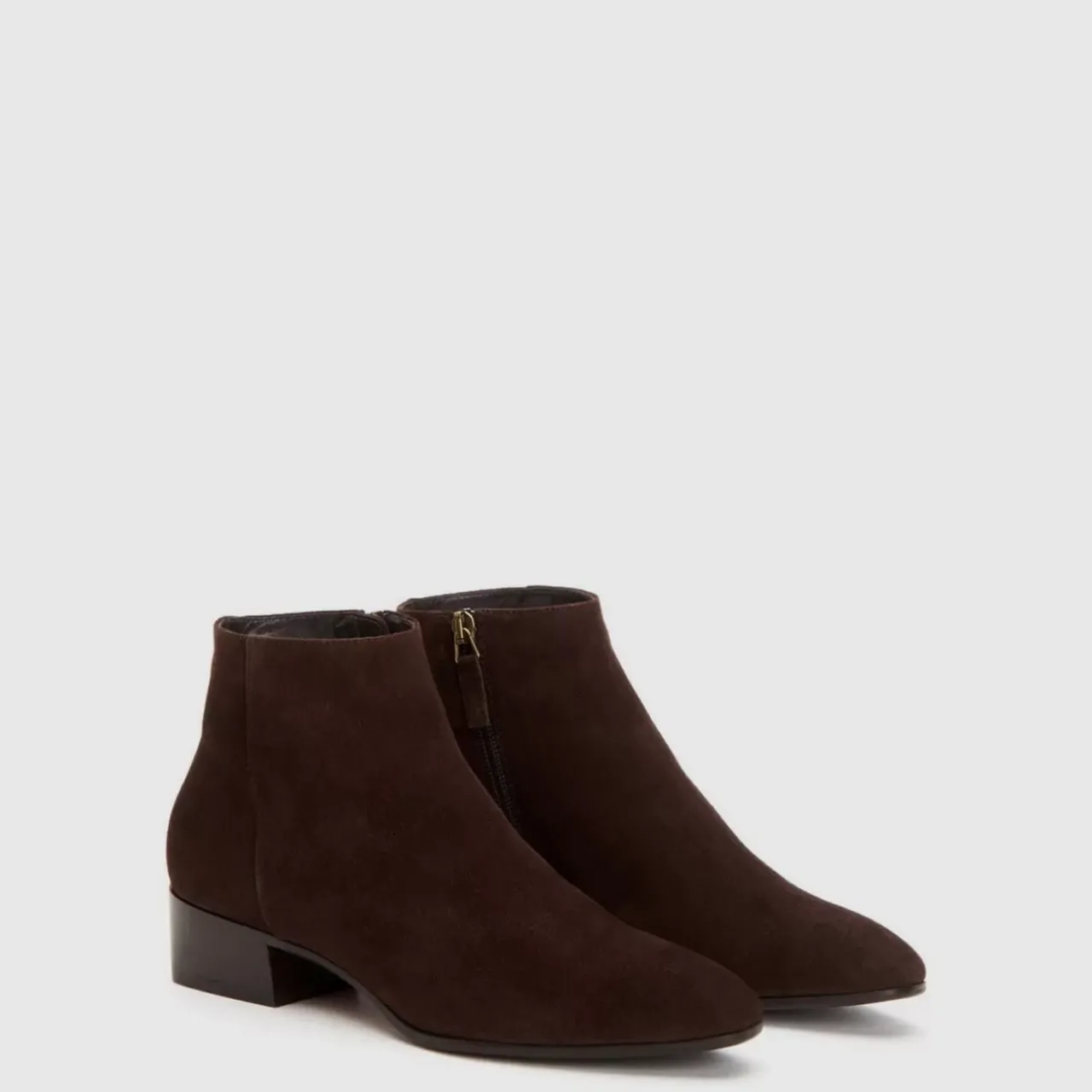 Pointy Toe Suede Bootie With An Inside Zip On A Stacked Heel. Now Available In Wide Widths.
